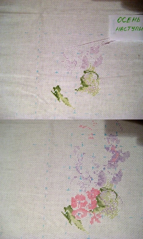 Закончила Летний полдень и начала, точнее продолжила, вышивать Флоксы от Риолис. Для начала пришлось распороть сиреневый цвет, вышитый прошлым летом, перепутала оттенки. За 2 дня - 1196
