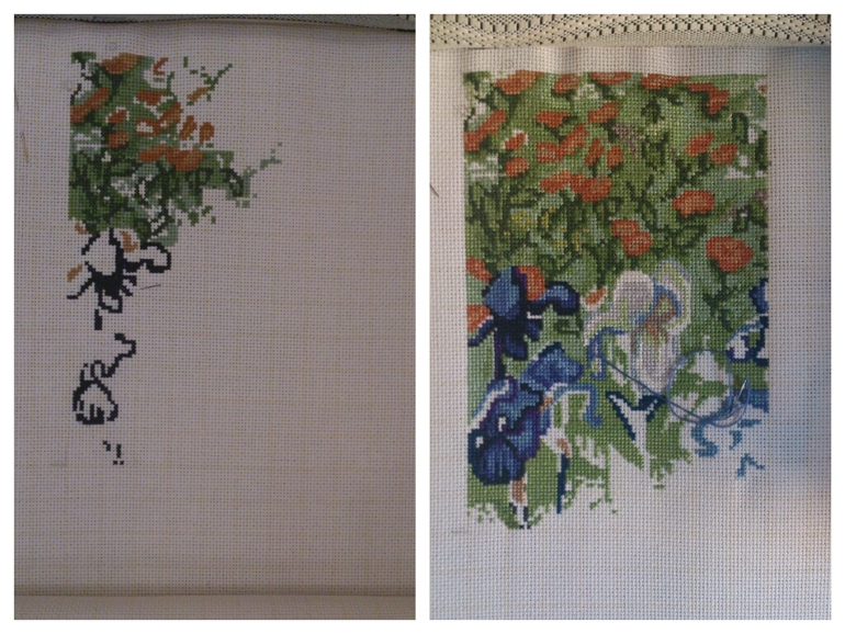 Всем привет! Какая-то эта неделя у меня совсем не вышивальная вышла. С малышкой ходили по врачам, потом поехали в гости к бабушке, и сегодня привезли оттуда сопли поколено. Это притом что нормально выздоровела она только перед отъездом. Ругаю себя страшно, что ребенка после болезни потащила куда-то. Но надеюсь все обойдется.А по вышивке пыталась догнать девочек из авантюры в итоге из-за поездки опять отстала. И повышивала кошечку свою совсем чуть-чуть даже показывать стыдно.Было