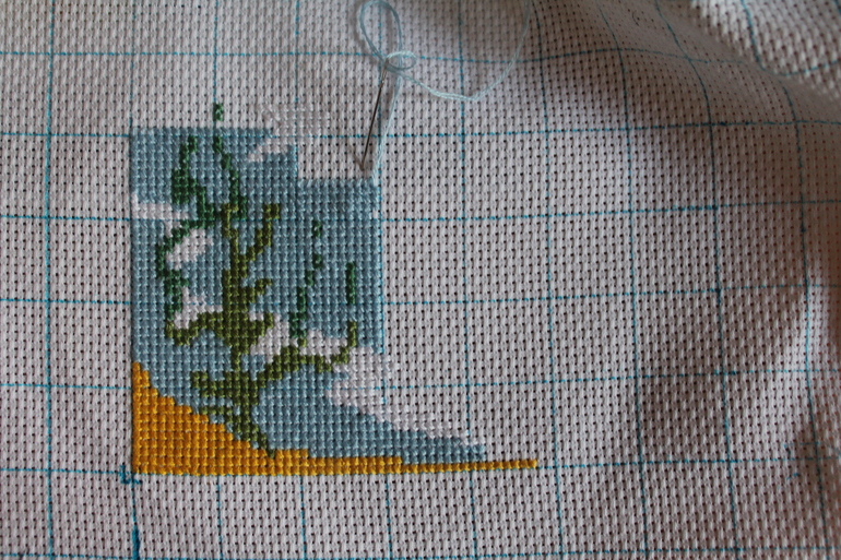 Всем привет. Надо сказать что вначале была очень расстроена гигантскими крестиками 14 канвы, последние работы вышивала на 16 и 18 (гораздо больше нравится результат). Думала даже сменить канву, но так как в наличии не оказалось подходящей решила продолжить на этой. Ещё и окрашена она модно, ничего привыкну. Иголка сломалась тут же, пришлось заменить. Ну вот как то так...