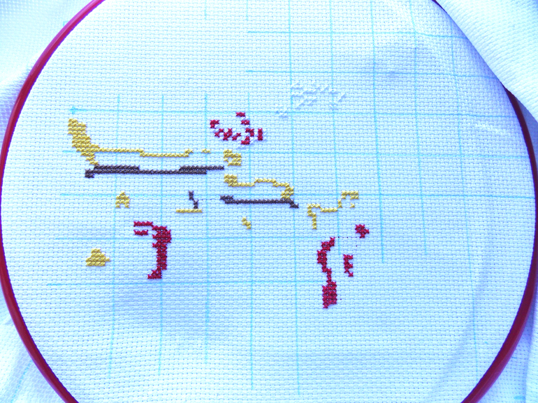 забавно смотрится, не смогла определить - с какого угла вышивается пиратский корабль))