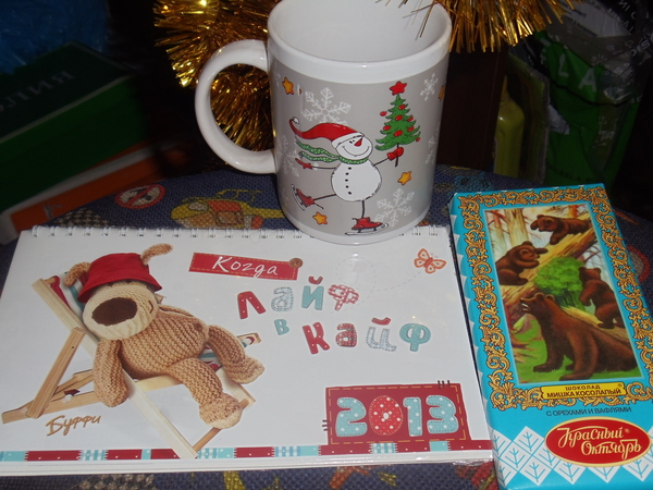 Календарь,кружка и шоколадка,которую мы отдадим мужу,чтоб ему не завидно было.