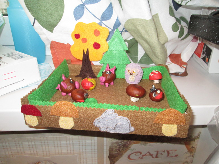 В итоге у меня есть даже 3 маленьких готовых работки оформленные в рамочки и подарены)))) И законченная пасхальная салфетка из авантюры. Девочки, как же я в том году с удовольствием наблюдала за ВД, и даже представить не могла, что приму в нем участие. Это что-то такое далекое было)))забыла похвастаться))) Сделали небольшую поделку в садик для младшей на осеннюю тему, старшая активно помогала, а вот маленькая чуть не сломала в последствии: