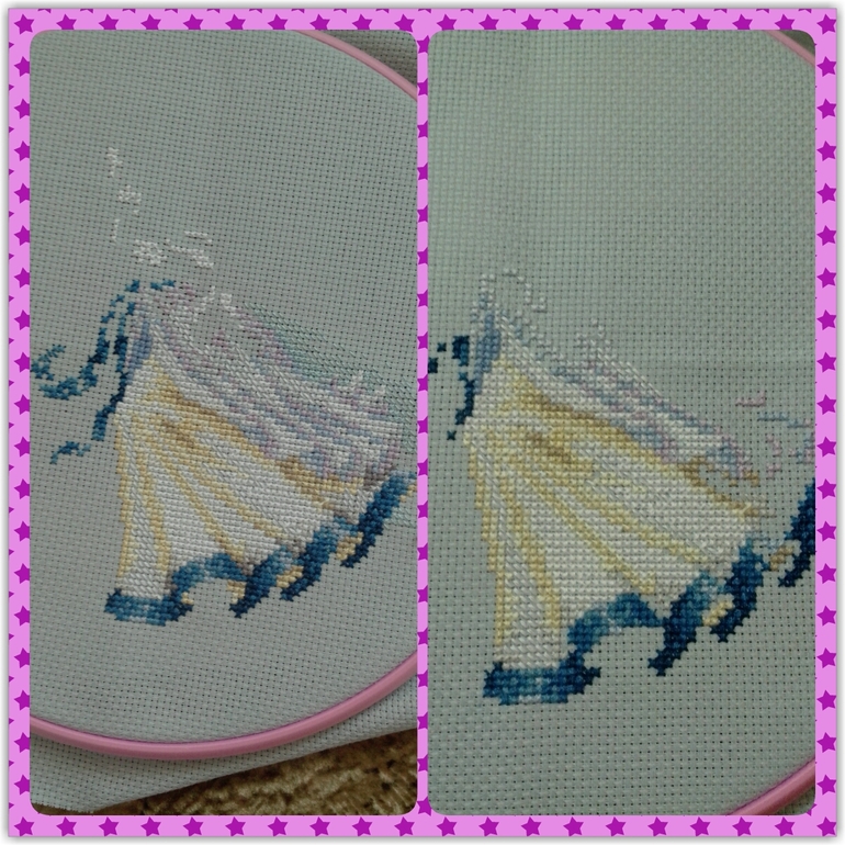 Привет всем! На этой неделе вышила побольше чем раньше, но все равно маловато. Было-стало: