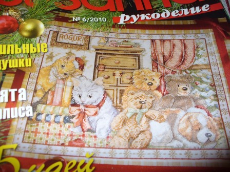 И теперь по теме. Это случилось в ноябре 2010 года, шла я на работу мимо киоска и увидела журнал Susanna рукоделие, очень понравился сюжет на обложке, весь рабочий день вспоминала, а вечером купила. До этого никогда не вышивала, все изучила, в выходные пошла в магазин за канвой , нитками, маркером. Сейчас вспоминаю, муж так удивился, даже спросил, что я буду потом делать с вышивкой, а я не задумываясь ответила, что может когда дошью, уже малыш появится, подушку сделаю. Вышивку так и не доделала, а в конце декабря узнала что беременна. Вот этот журнальчик и вышивка, так и лежат в шкафу.