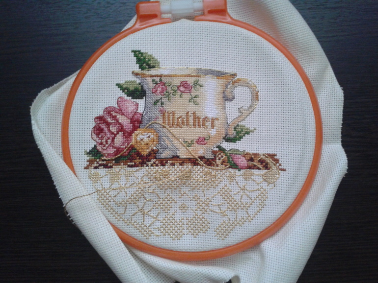 Привет!Я наконец-то дошила салфеточку под чашкой! Осталась рамочка, но ее я на время отложу и буду на этой неделе шить свой кусочек РР. Собственно, отчет:Было: