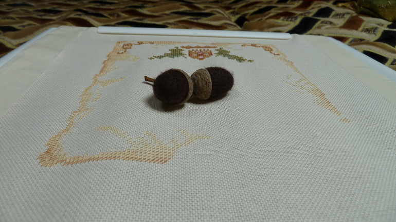 Ой ой уже вторник... Всем привет! Нового вроде ничего. Зима крепчает. Неделю проболели, сегодня пошли в сад, как будто в первый раз, слёзы градом.... Решила отдохнуть от мельницы, мало её вышивала. Зато насладилась равномерочкой и новой этикеткой. И сделала жёлуди!