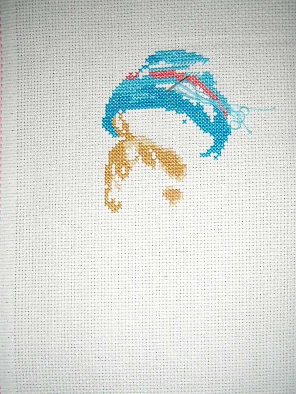 Привет-привет!!!! Только приехала и сразу отчитываться, прошу прощения за задержку с отчетом, все-таки дополнительный выходной дезариентирует))))))Очень грустно, что столько участниц уже устали и относятся к ВД не так серьезно как хотелось бы. У меня эта неделя слабоватой оказалась, мы еще в пятницу уехали в деревню к маме и вот только сегодня вернулись, потому толком не вышивалось.Опять моя маленькая шкода к вышивке ручки свои потянула, как итог канва местами окрасилась в розовый цвет, одна надежда на то что эти места зашьются темным.