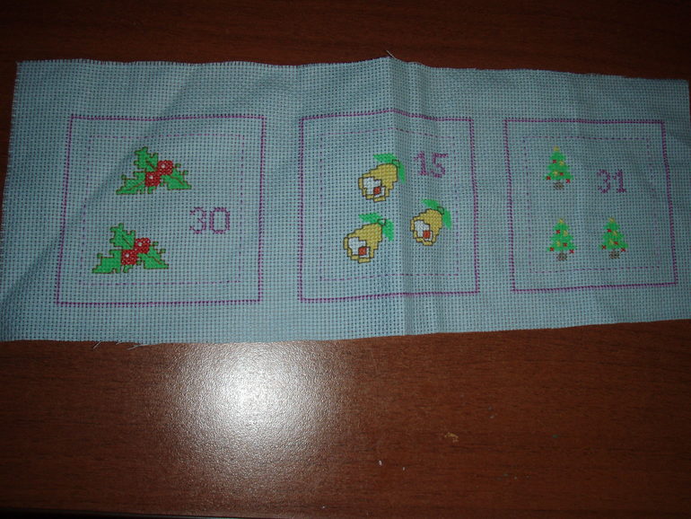 Я дошила все кармашки! При этом кармашек с цифрой 30 перешивала дважды - первый вариант (на зеленом) мне не понравился, и я его выбросила.