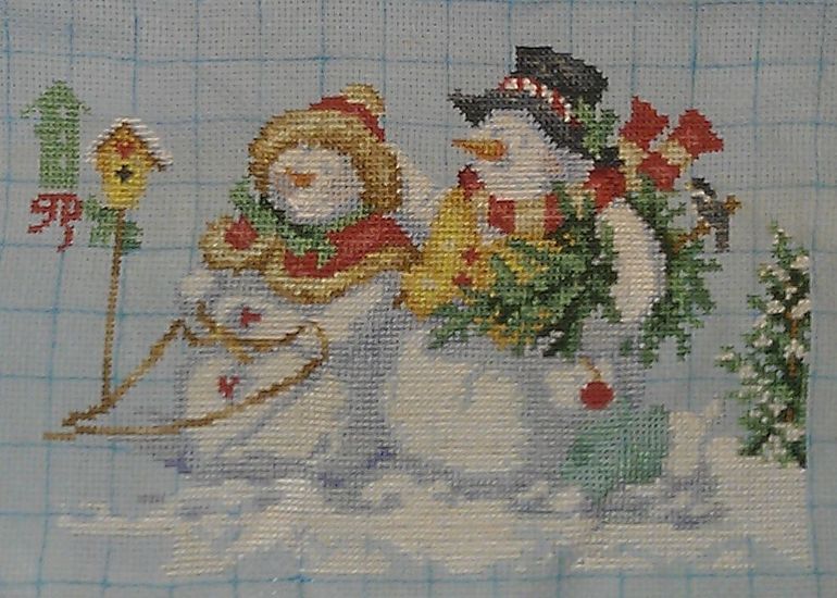 Классный снеговик!Я тоже на него засматриваюсь и легко и очень красиво)А может тебе самой покрасить канву?Давно хочу поэкспериментировать...