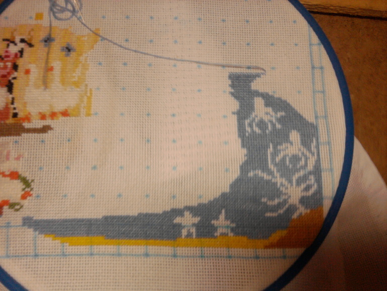 Я вышиваю под фильмы на компутере. Сериалы в основном. Смотрю их по сотому разу.. На этой неделе закончила ногу "от бедра книзу", планирую к следующим выходным с пастью разобраться. Хотя... со среды начинаем ремонт в той кв куда переезжаем, поэтому не знаю что вообще у меня получится.