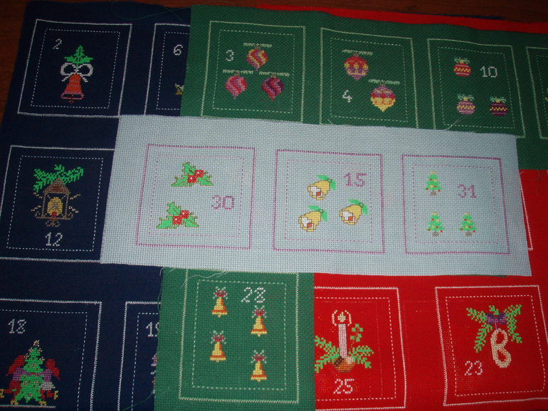 При сборке адвента я столкнулась с тремя проблемами разом: 1.Я очень посредственная швея. 2. Сюжеты сотрятся роскошно по отдельности, но вместе сливаются в аляповатые красно-сине-зеленые пятна. 3. В доме нет места, чтобы вывесить нехилых размеров адвент. В результате вырезала сюжеты по отдельности и вставила их в фотоальбомчик, получив перекидной календарь. Егорка в восторге.