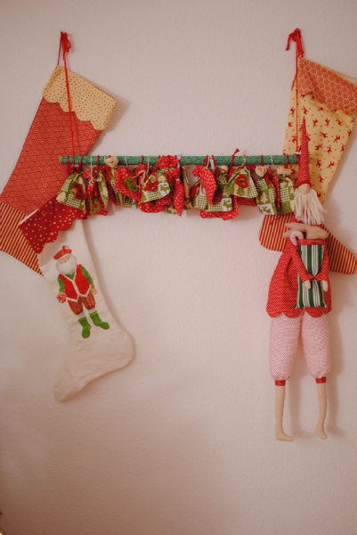 Что касается оформления и сборки, то я столкнулась с несколькими проблемами разом: 1. Я очень посредственная швея. 2. Сюжеты, которые отлично смотрятся по отдельности, вместе получаются слишком пестрыми. 3. В квартире не оказалось места, куда можно повесить адвент в собранном виде.Я долго мучилась раздумьями и наконец придумала такой вариант: вырезала сюжеты по отдельности, вставила их в маленький фотоальбом и получила перекидной календарь на декабрь. В кармашки альбома можно добавлять, например, записки для Деда Мороза и получать оттуда от него всякую мелочь типа наклеек или календариков (конфет и т.п. я в адвент изначально не планировала вкладывать).Вот так - на том месте, где и будет стоять в декабре.