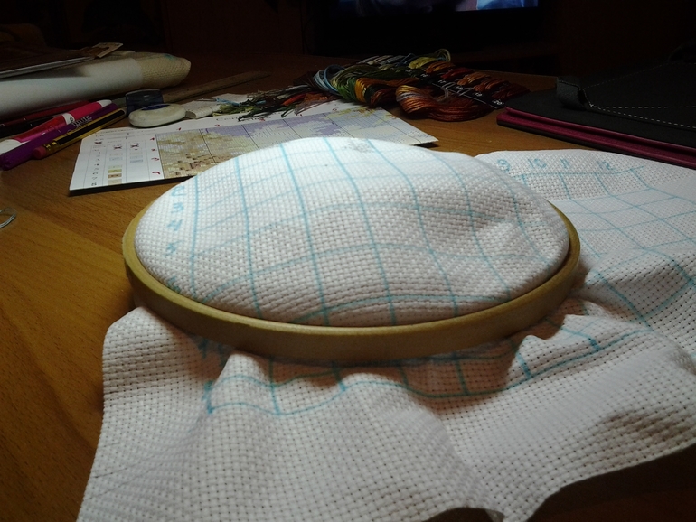 У меня пяльца с регулировщиком и я сначала раскручиваю чтоб посвободнее было и потом когда натяну хорошо канву-закручиваю регулировщик потуже чтоб не соскальзывали