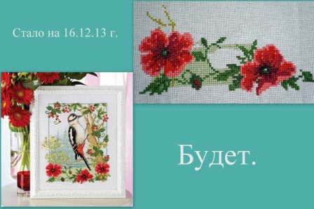 Привет всем! Судя по всему -я последняя)))Вышивала на минувшей неделе ооочень мало. Маки чуток ковыряла.., стирала своих коней ( маркер плохо отмывался..но вроде все обошлось). И начала вышивать бэк на лошадях. Ооооохххх, не люблю я это дело, кто бы знал и вышил))))Вот мои маки...
