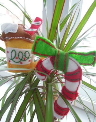и 2 игрухи из флиса, сделала для пробы, просто интересно было понравится мне процесс или нет, это набор дим, могу сказать результат оч понравился моим домашним, елки пока нет, висят на драцене)