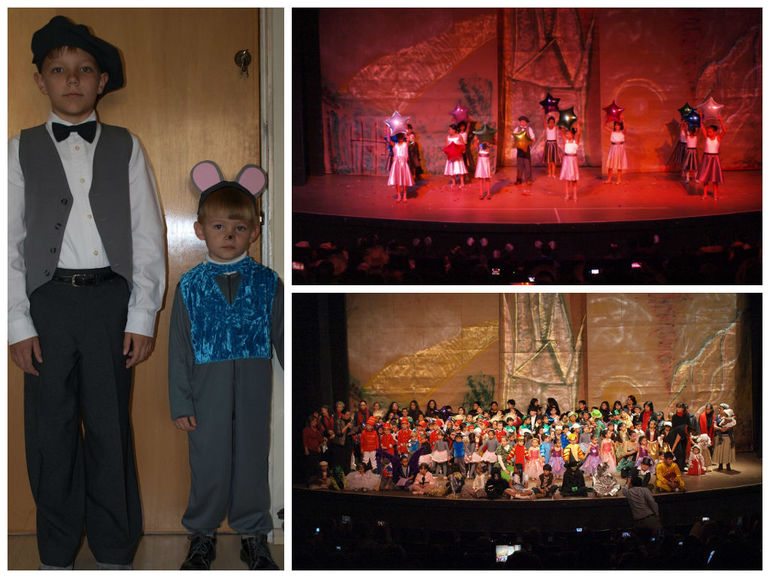Теперь о выступлении моих гавриков :) Слева - плоды моих трудов (в смысле костюмы), справа - как это было: