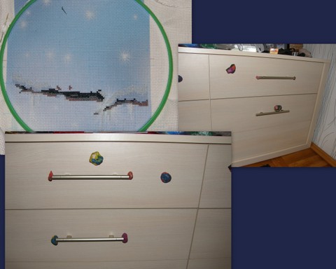 Поздравляю с завершением!!!чудесная работа,погрешностей не видно:)комод украшен детскими ручками-прелесть,даже если пластилином!!!:))
