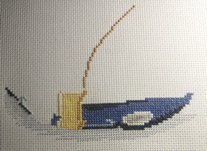 правда от долгого лежания в пяльцах и подколотый булавками-булавки проржавели и подпоритили мне ткань..а сегодня я довершила начатое вредительство и отстирывая эту самую ржавчину так перестаралась, что протерла нити переплетения...Теперь в трех местах рядом с букетом неприглядные пятна деформированной Мурано...я даже не расстроилась, представляете...я просто тихо удивлялась собственной тупости и одержимости это отстирать))))) будет мне немым укором всю мою долгую последующую жизнь)))ну и повеселю еще немного)) мой ребенок на днях украсил мне к НГ мой рукодельный комод...пластилином)) и был жутко доволен и горд собою-как красиво вышло)))..заодно покажу и начатого совенка от МП студии...это зимний малыш)))