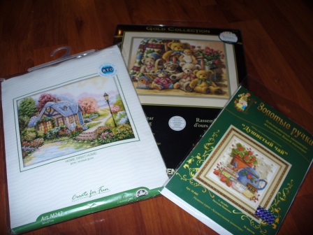 Я балдею от кошки твоей!!!а запасы у меня такие же есть,хочу и мишек вышить и чайник этот!!ммммм...