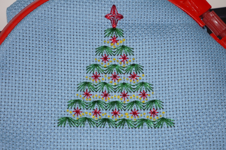 Времени совсем мало. Дети занимают его полностью. Вышиваю урывками, когда спят вместе. На этой неделе к метрике руки не дошли, но вышилась миниатюрная елочка, на которую я еще в прошлом году засматривалась.