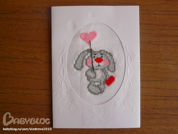 А эту открытку я вышила для моей любимой снохи,правда еще не подарила)