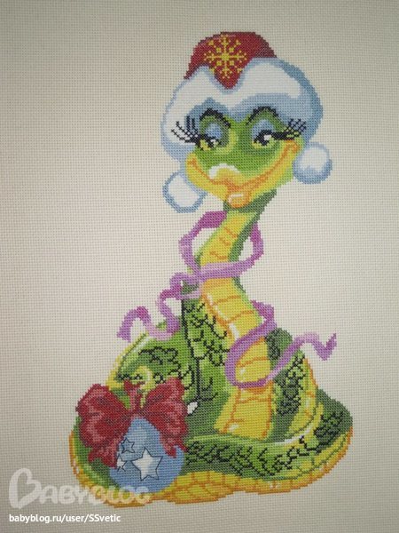 Оформление пока виртуальное, но змейка уже уехала в багетку, будет готова как раз к 31 декабря)