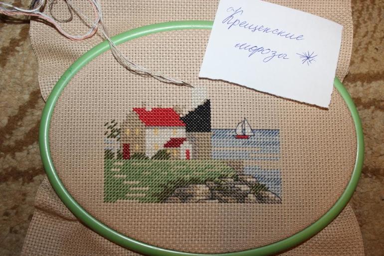 с учетом 14 канвы 516 крестиков (на фото вышито чуть больше,сфотать не получилось сразу-начала вышивать для отчета следующего дня..)