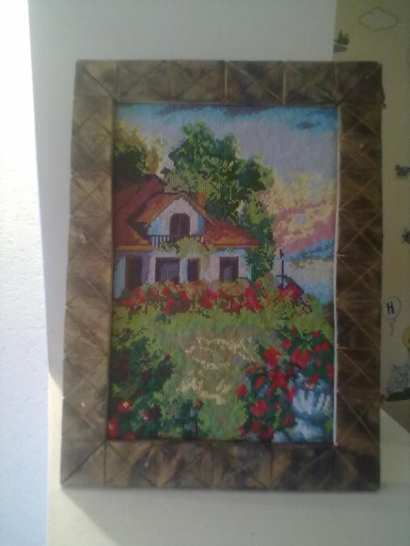 у меня в смысле другая картинка, не эта... тоже с забором.... так что это в принцепе плохой выбор - канва с печатью, какой бы красивой не была картинка...