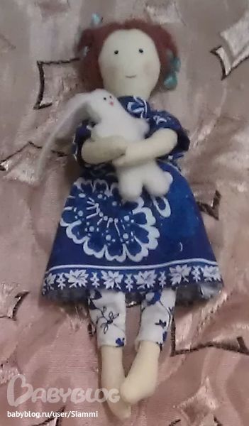 А еще наша волшебница-феечка делает кукол, так что Светику досталась тильда-куколка с зайчиком))