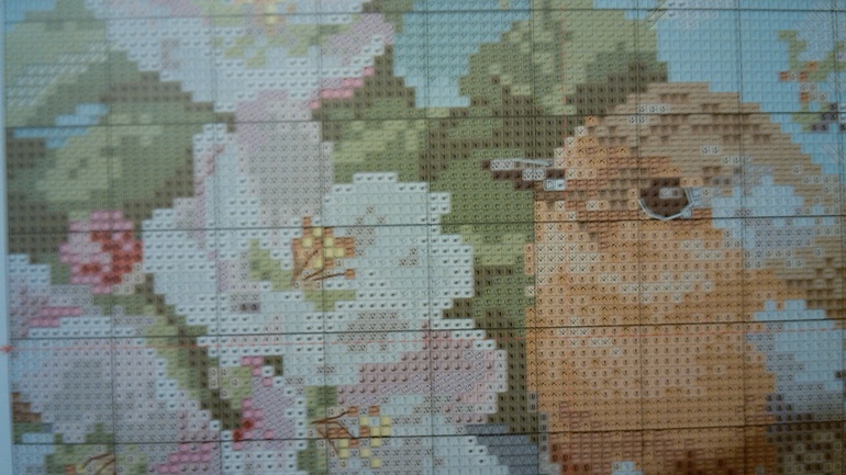 Птицы, мне кажется, станут хитом у Алисы. А котенка мне подарили, там вышивать-то и нечего, отдыхалочка. Но пока лежит.