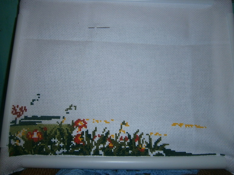 . Люба мы с Вами один и тот же дизайн отшиваем, только я снизу начала. Будет интересно наблюдать за нашими процессами: у Вас картинка сверху расти будет, а у меня снизу.