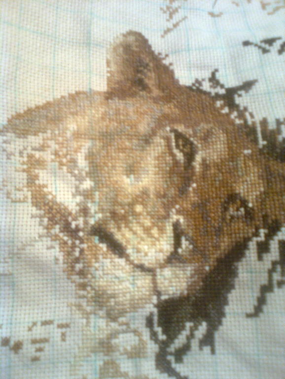 Девочки всем привет. Как и предупреждала - вышила не много (параллельно еще 3 работы шью), да еще и двойную работы себе сделала... Напоминаю: у меня было отшито порядка 200 крестиков на канве из набора в 2 нити. И тут я соблазнилась на нововведение Ирины и решила заменить канву на 16 и шить в одну нить. Преимущества шитья в одну нить для меня: это увеличение скорости, т.к. не надо нитки постоянно поправлять и уменьшения размера картины. Отшила я на 16 канве тоже 200 крестиков и мне не понравилось... Крестики действительно ровненькие, канва не светит, но картина стала абсолютно плоской. На 14 в 2 нити - крестики пухленькие, объемные, а тут