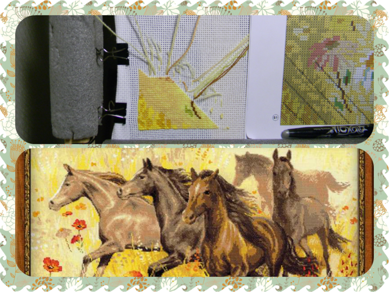 Дизайн понравился сразу как только увидела его впервые: поле, лошадки, маки, ромашки - такие родные, как в деревне летом... Не могла успокоиться, пока его не приобрела и наконец стала вышивать. Очень они мне нравятся, уже есть место в квартире, где они будут висеть, осталось только вышить.