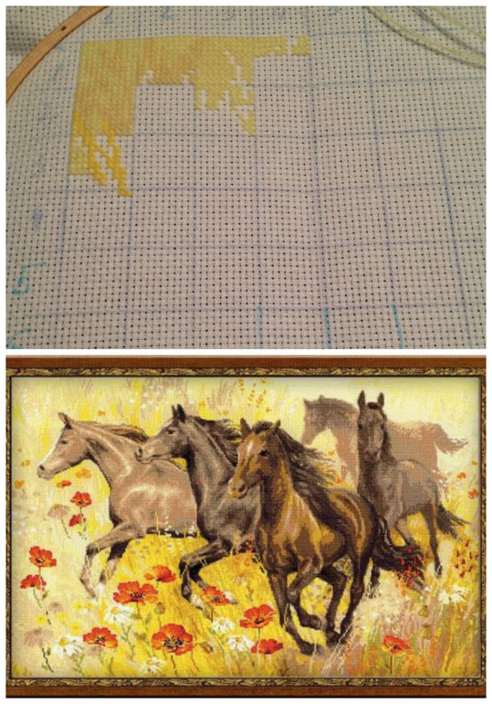 вообще не айс. Не вышивала, ходила смотрела несколько дней, потом пошла к мужу и он развеял все мои сомнения - сказал, что лучше выглядит на 14 канве в 2 нити (это при том, что муж к моему увлечению относится прохладно и всегда отвечает решай сама...). Воть, стала продолжать вышивать на 14 канве в 2 нити и процесс мне все больше и больше нравится. Вот мои коники, вернее их совсем малая часть: