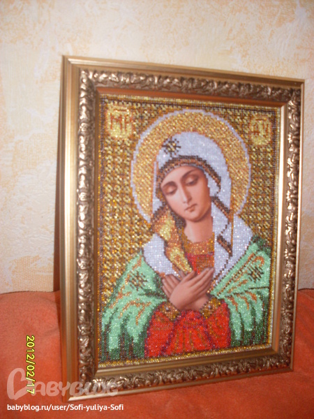 Первая работа - икона бисером в подарок маме...