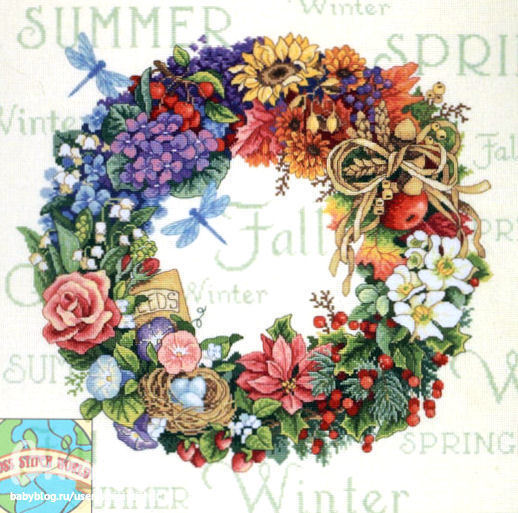 я вышивала этот венок, сама работа 30*30, по-моему, сам венок, конечно, меньше