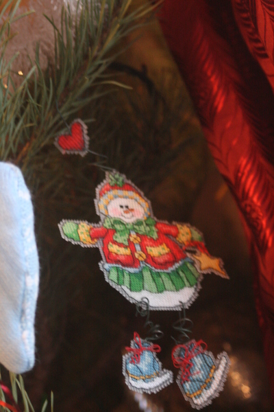 У меня вышитых нет, а ёлку не наряжали - если её дочь не разберёт - то кошка поможет...