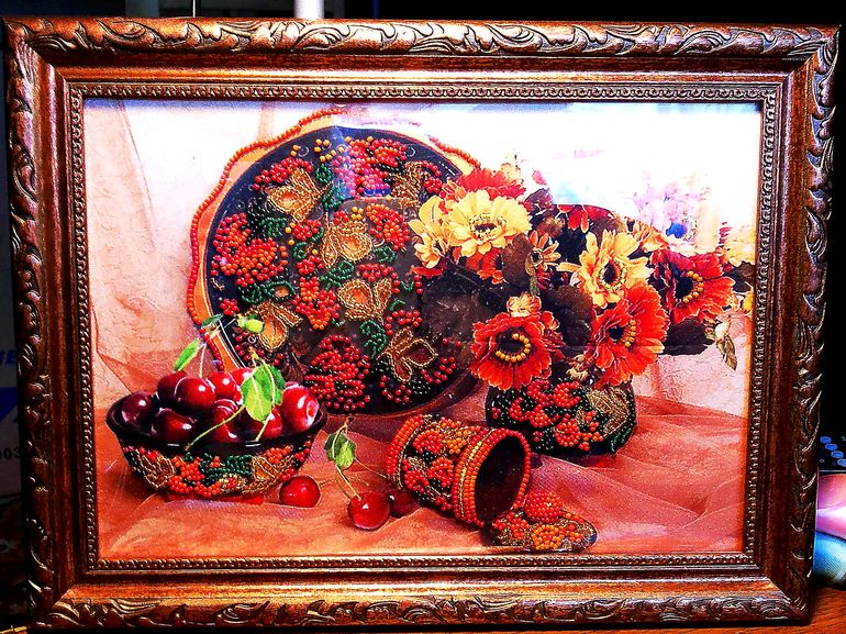 какая нарядная картинка!! очень сочная! расскажите как ткань? и бисер? засматриваюсь на эти наборы, а решиться не могу))