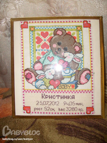 Вышивка крестомК Новому году вышилась для дочурки такая метрика, на работу ушел целый месяц.