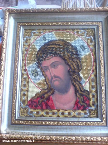 2. Икона, вышитая бисером "Спас в терновом венце". Это первый опыт вышивки бисером. Результатом очень довольна! Подарила своей любимой сестре.