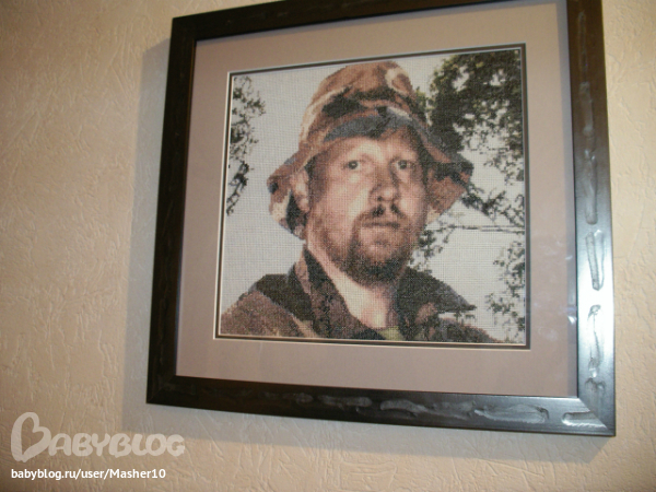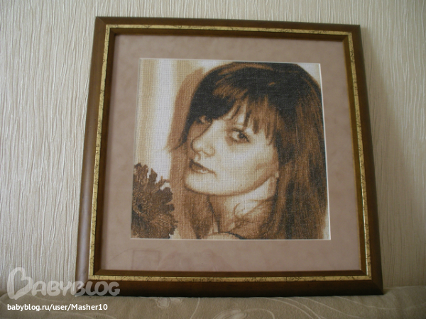 Началось все с портрета дочки, схема была настолько удачна, что вышила ее практически на одном дыхании. потом был портрет сына, свекра со сввекровью, мамы, мужа... Свой собственный портрет лежит разработанным уже лет 6 и, все никак не дойдут до него руки. Может, все-таки соберусь. Он, как и портрет мужа, в цвете. Я со схемой так долго сидела, а воплотить все никак не могу.
