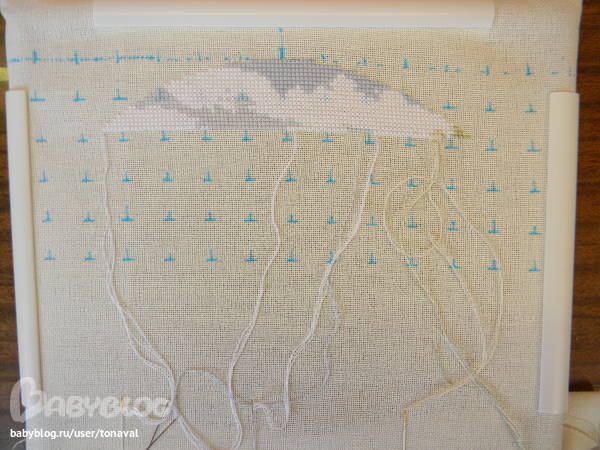 Есть еще 2 процесса, но они идут очень туго, возможно не закончу никогда, последний вообще оказался прогоном с сайта Крест.ру (но в то время я еще о прогонах не знала). Это самая моя первая вышивка, отшита почти до половиты и заброшена.