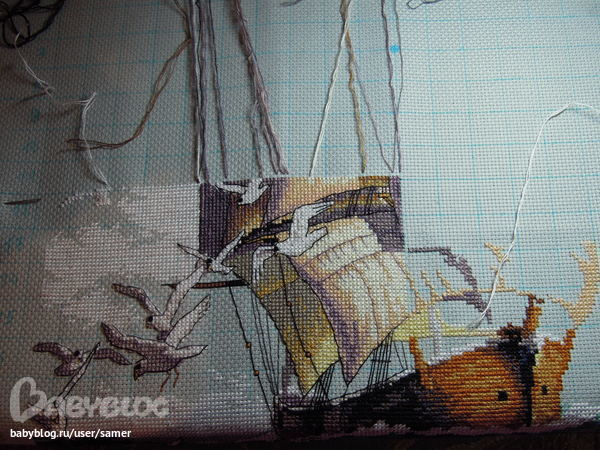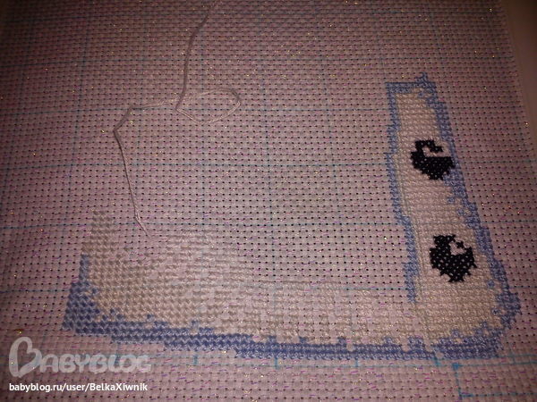 Прошу прощения за опоздание, фотик только сегодня забрала. Продвинулась немного, сильно попутала бэк вышивала не в то количество ниток, пришлось все переделывать, жесть, столько времени за зря погубила(