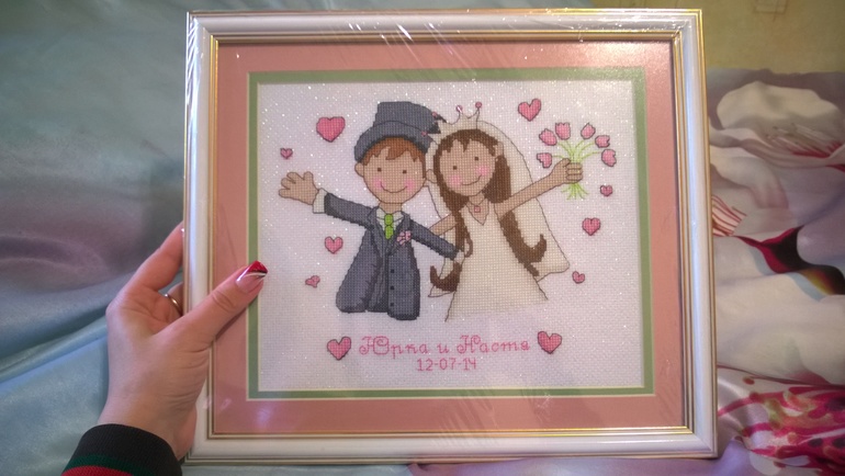 Свадьба сегодня, картину уже подарила с утра, чтобы не тянуть с собой, но сестра все равно забрала ее в загс и кафе пофоткаться с ней.