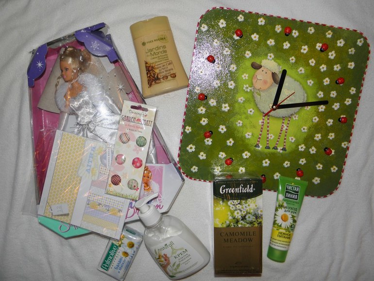 Поздравляю с подарочками. Они чудесные))) Часики обалденные, такие радостные и летние, позитивные. Один взгляд на эту овечку и я невольно расплылась в улыбке))