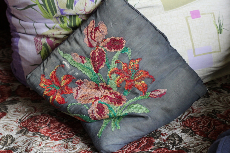 Да, она любит рассказывать про свои рукоделки, что и когда вышивала, вязала и бережно к ним относится.