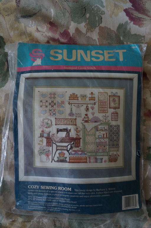 Загорелось моей тетушке любимой вышить картинку, кусочек которой использован в дизайне сайта "Бабушкино ремесло". Племянница, то есть я, будучи человеком в Интернете прошаренным, нашла, что картинка эта - ни что иное, как допотопный набор sunset, который уже триста лет как не производят. Ну тетушка давай меня просить - найди схемку, я крестиком по канве вышью (в оригинале - печатный крест на муслине). Хочунемогу, как говорится. А поскольку близился тетушкин день рождения, то я решила поискать, а вдруг на ибее есть этот набор. И таки-да! Он там был, и даже не в одном экземпляре. Проанализировав примерные расходы (а некоторые продавцы на набор поставили ну очень низкую цену и заломили ну очень большую стоимость доставки), я нашла наиболее оптимальный вариант (750 набор и 450 доставка) и заказала его. И вот, вчера он попал в наши с хомяком лапки. Тадам!