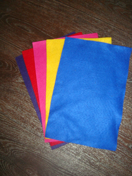 3. Отрезки фетра 20*40 см синий, желтый, розовый, красный фиолетовый