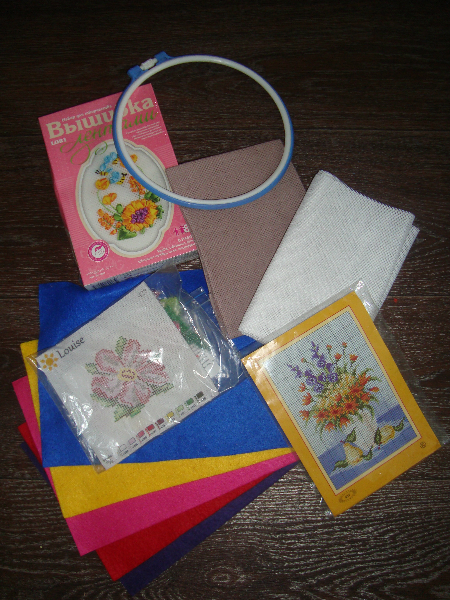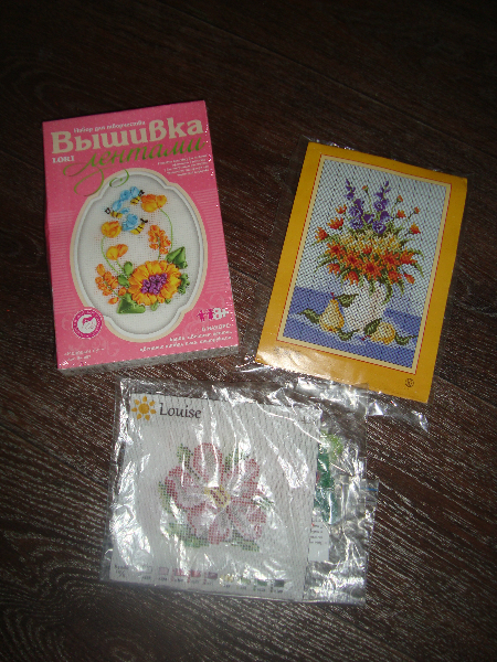 2. Наборы для вышивки лентами "Медовый луг" (очень красиво получется), крестом "Цветы в вазе" (вышивала подаренный набор, картинку показать не могу, мама забрала себе, этот купила для себя, но передумала), и бисером "Лотос"