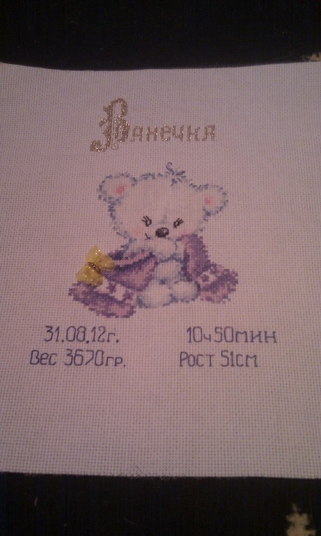 Вышивка крестомВышила я метрику для своего любимого сыночка, мне кажется что слово рост надо чуть правее, а вы что думаете и что подскажите с оформлением, багет? Рамка? Какого цвета?